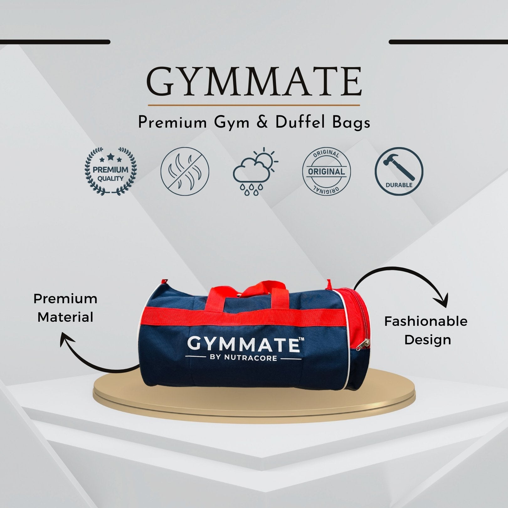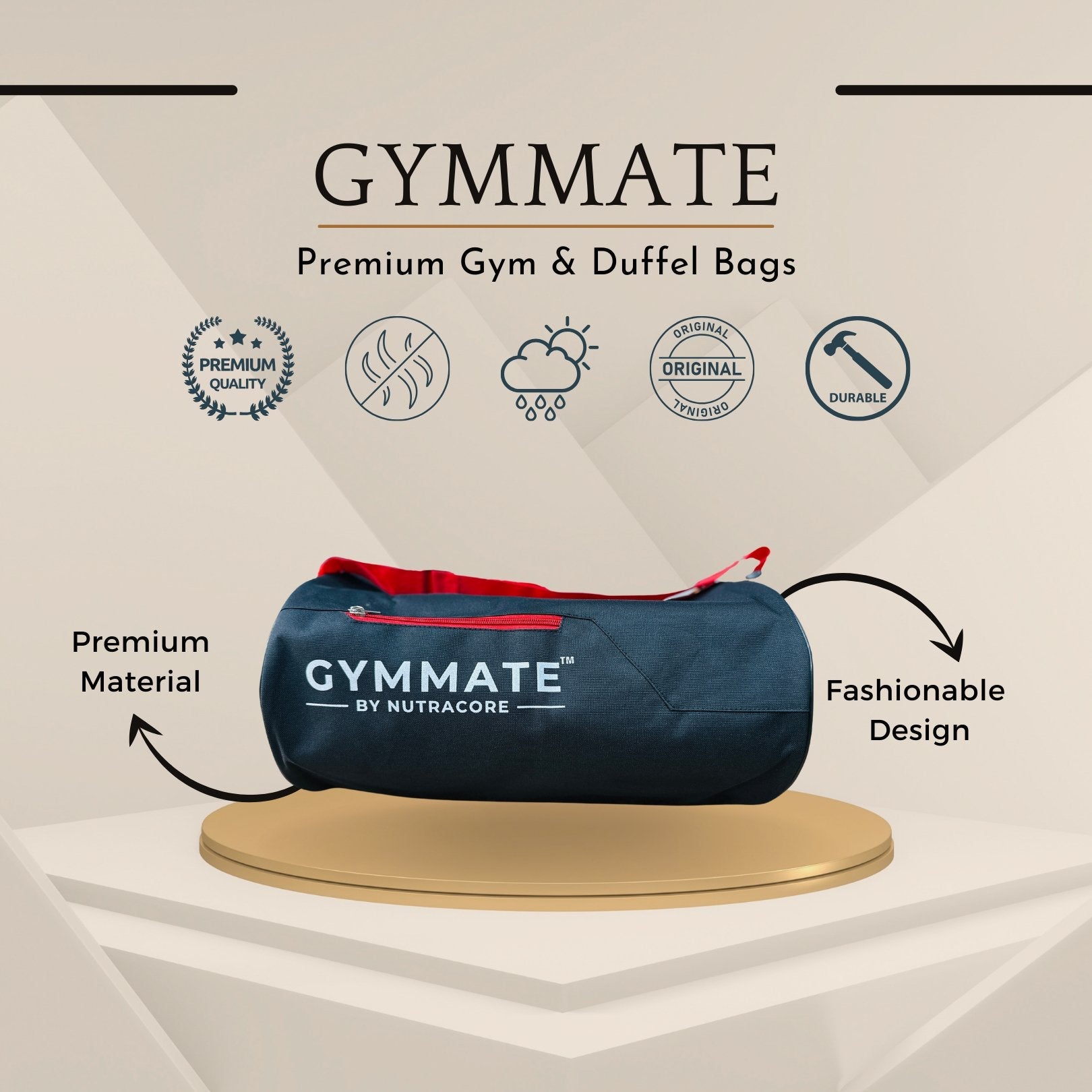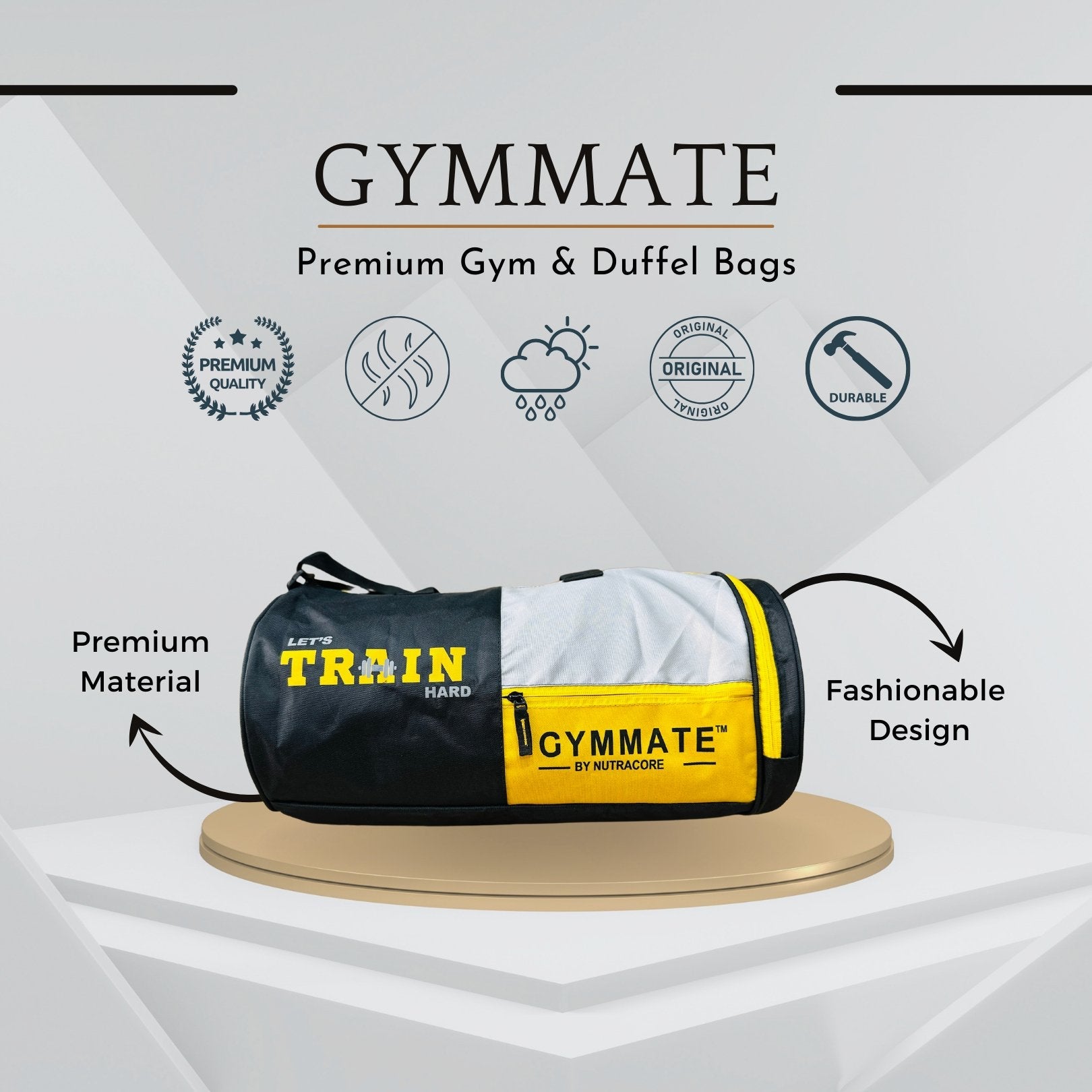 Gymmate Premium Polyester 48cm Gym Bag, Black