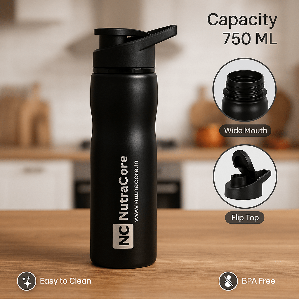 NutraCore Stainless Steel Sipper Bottle 750ML – Gym, Office & Travel Use