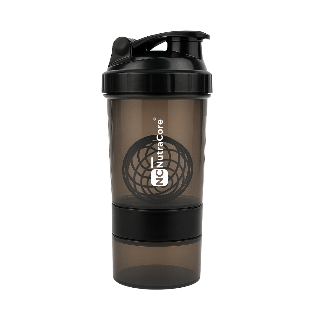 NutraCore BPA Free Plastic Shaker, 600ml with compartment